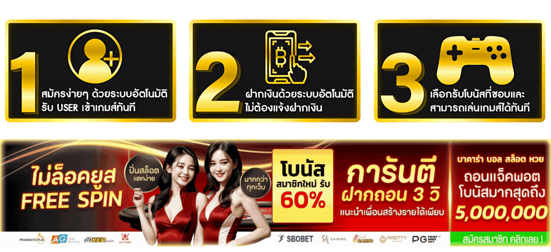 - มีโปรโมชั่นและเครดิตฟรีสำหรับสมาชิกใหม่